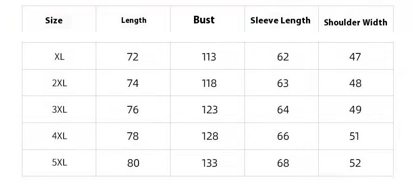 - Tailles disponibles : XL, XXL, XXXL, XXXXL, 5XL